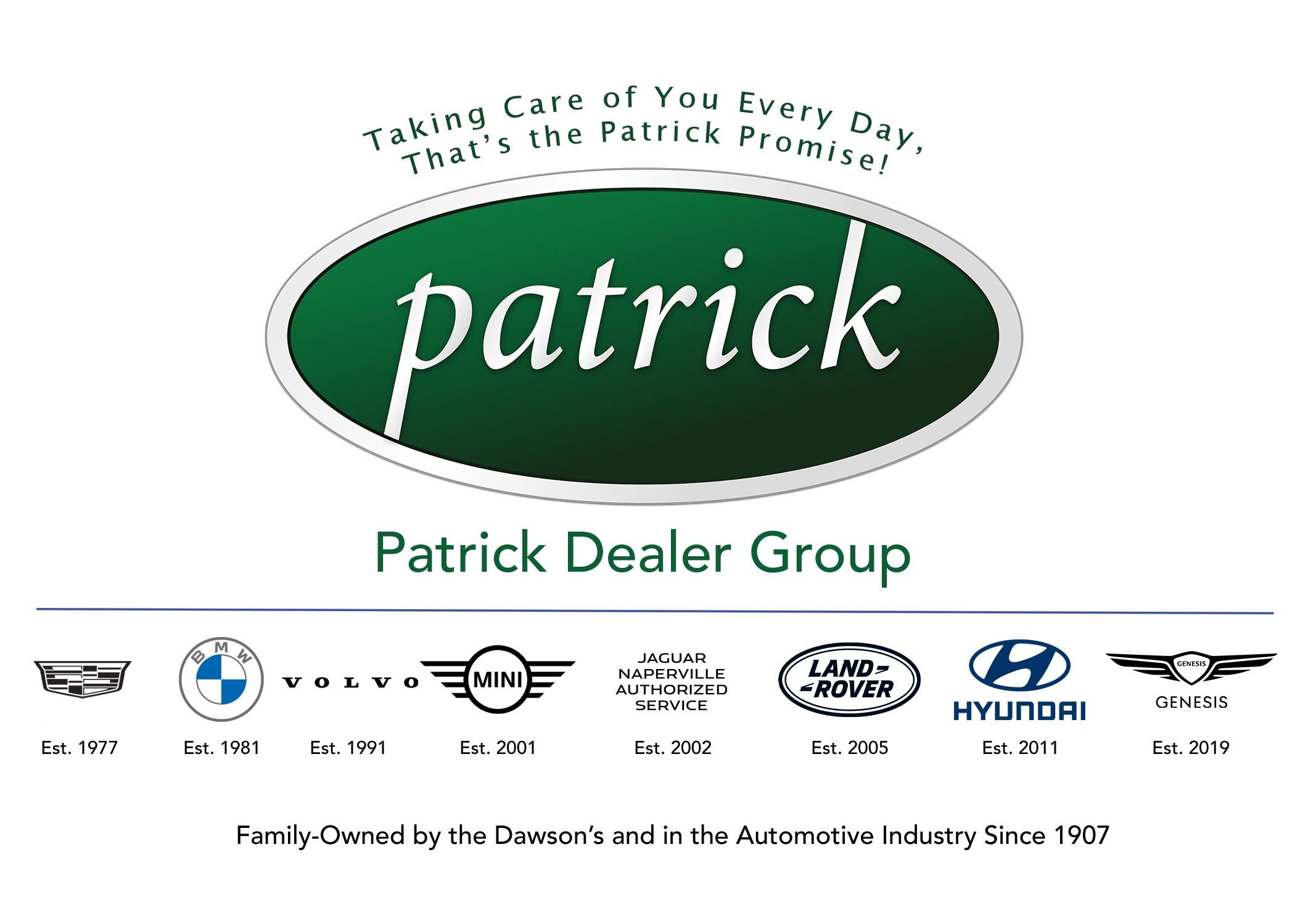 In 1977, Hanley Dawson III set out on his own to establish the Patrick Cadillac dealership that we have today in Schaumburg. Named after his youngest son Patrick, the Patrick Dealer Group was born. The first expansion to the operation was with the addition of the BMW and Saab franchises in 1981. Of the brands in our group today, Volvo was added in 1991, MINI Cooper in 2001, Jaguar in 2002, Hyundai in 2005, Land Rover 2011, and Genesis in 2019.