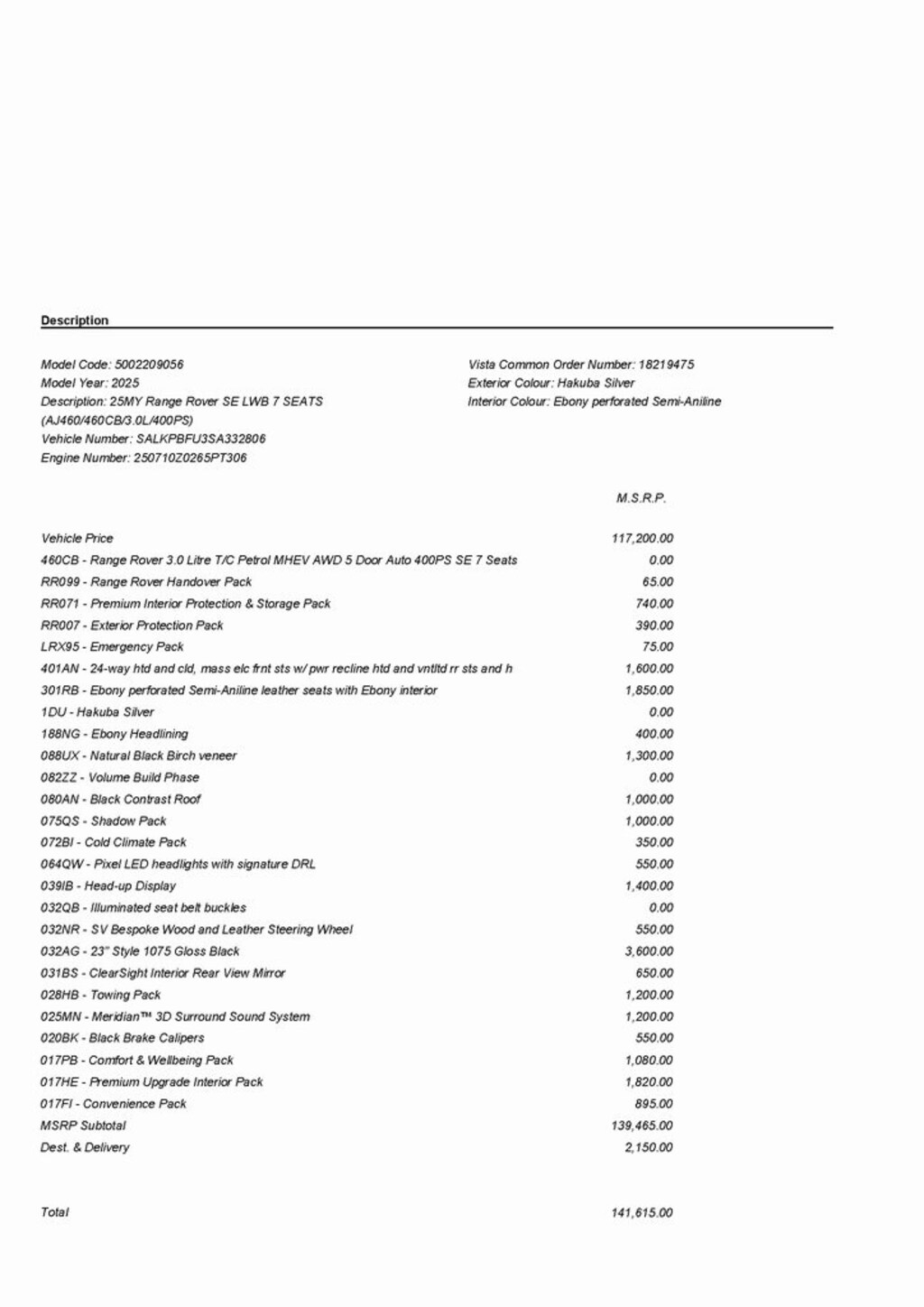 Ebony/Ebony w/SV Semi-Aniline Leather Seat Trim, 24-Way Htd & Cooled Massage Elec Fr Bucket Seats, Advanced Tow Assist, Black Brake Calipers, Black Contrast Roof, Cabin Air Purification Pro, ClearSight Interior Rear-View Mirror, Cold Climate Pack, Comfort Pack, Convenience Pack, Ebony Headlining, Emergency Pack, Front Center Console Refrigerator Compartment, Head-Up Display, Heated Washer Jets, Heated Windscreen, Loadspace Partition Net, Meridian 3D Surround Sound System, Pixel LED Headlights w/Signature DRL, Powered Gesture Tailgate/Boot Lid, Premium Interior Protection & Storage Pack, Premium Interior Upgrade Pack, Shadow Exterior Pack, Solar Attenuating Windscreen, SV Bespoke Carpet Mats, SV Bespoke Full Extended Leather Upgrade, Tow Hitch Receiver, Towing Pack, Twin-Blade Sunvisors w/Illuminated Vanity Mirrors, Versatile Loadspace Floor, Wheels: 23" 10 Split-Spoke Gloss Black.