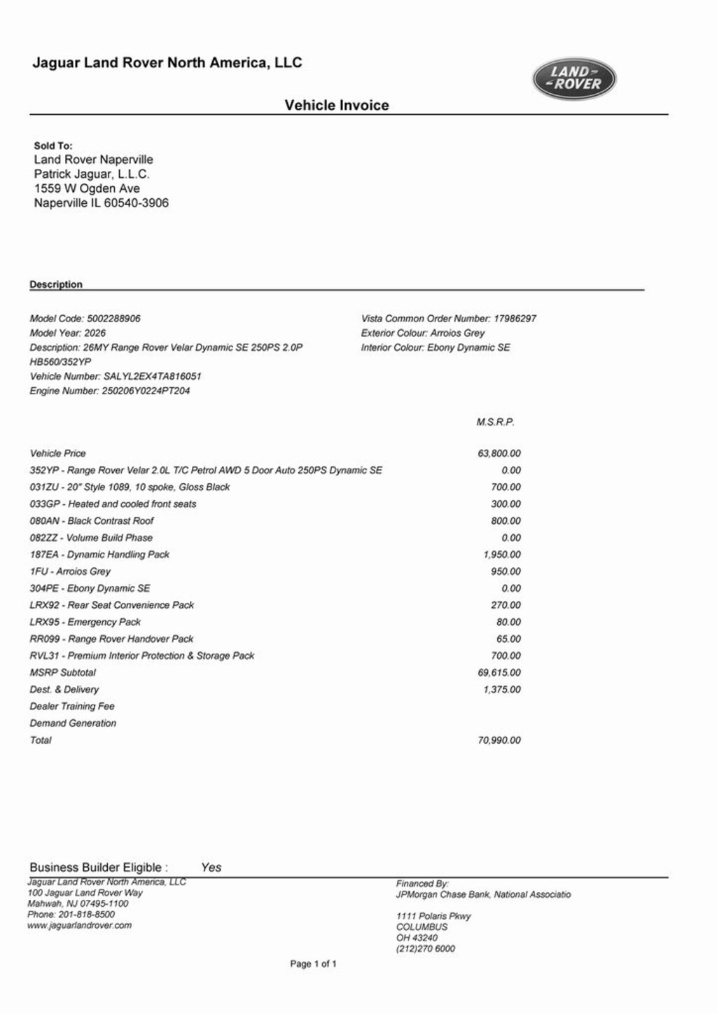 What do you get when shopping for a vehicle at Land Rover Naperville?