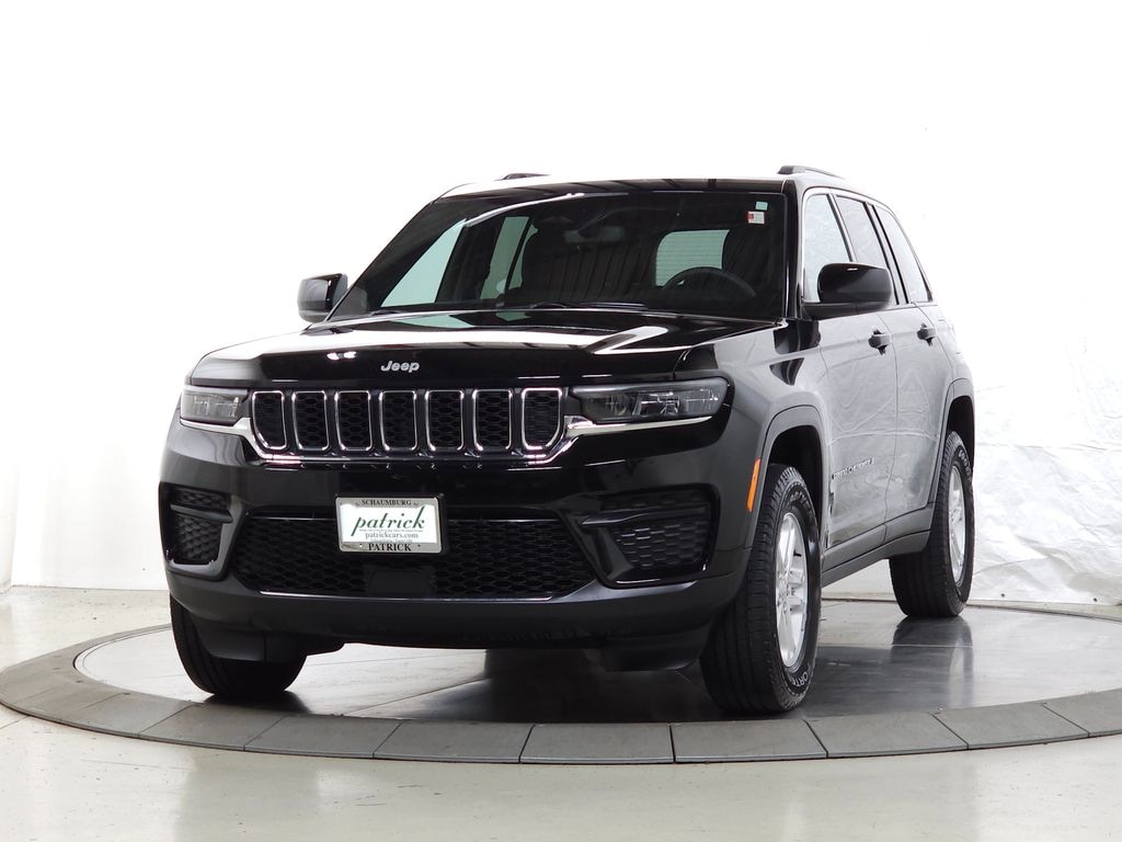 This 2024 4wd Jeep Grand Cherokee Laredo sports a Diamond Black Crystal Pearlcoat exterior with a well-appointed Black interior and has only 18,617 miles. Don't miss out on this used car for sale near Schaumburg, Arlington Heights, Bloomingdale, Elk Grove Village, Hoffman Estates, and Mount Prospect!